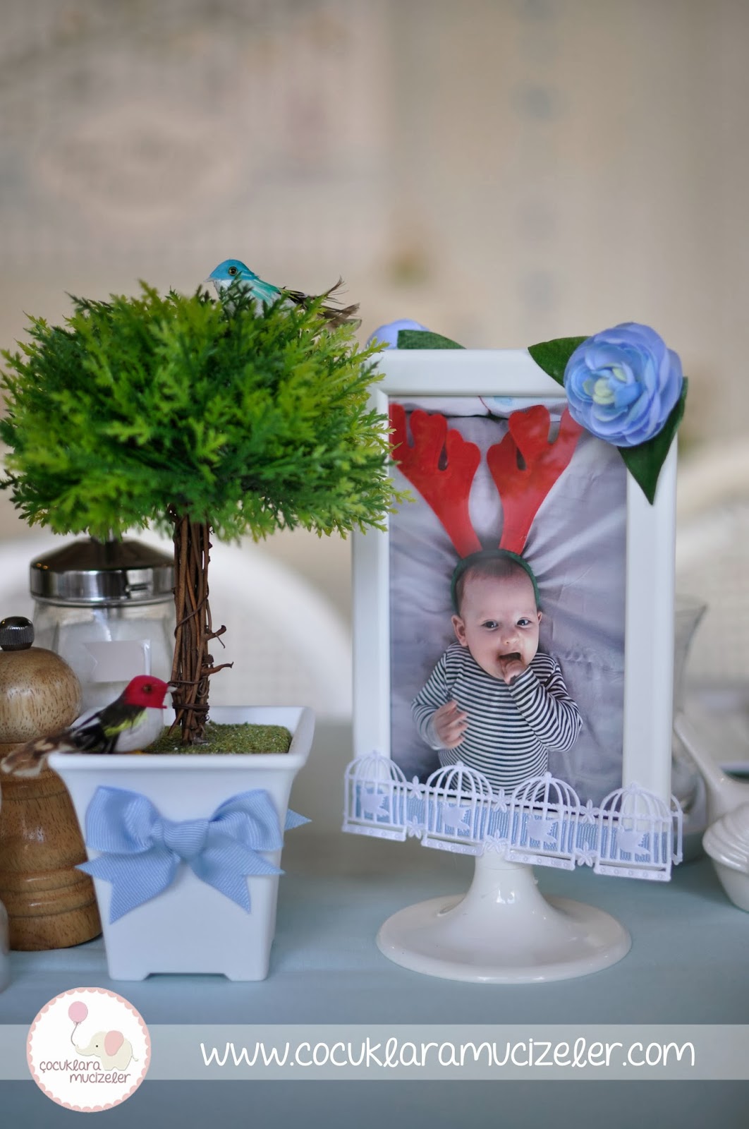 Erim Mirzat'a ileride okuyabileceği tatlı bir hatıra bırakmak isteyen misafirlerimiz için hazırladığımız anı köşemizde, parti temamızla uyumlu kuş figürlü anı kartları ve bu notları asmak için de ağaç platform hazırladık.